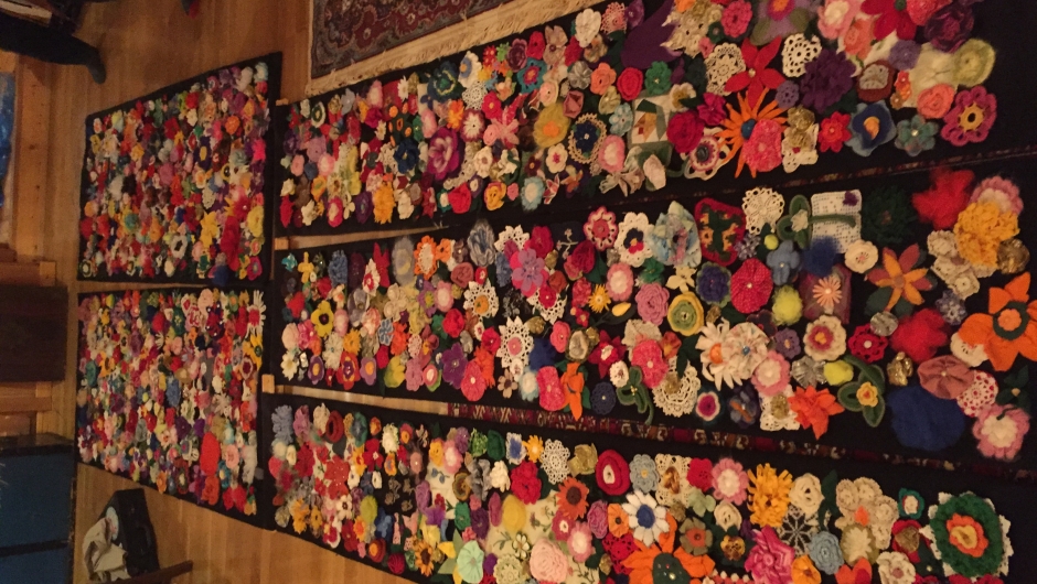 Teppet vart laga i 2008. Det var leiaren i BBK det året, Hanne Strøm som fekk idéen. Ho ville gjerne at alle medlemmane i BBK skulle gå saman om eit prosjekt. Vi var den gongen 50 lokallag med tilsaman 1327 medlemmar. Alle medlemmane skulle lage ein blome kvar for å vise mangfaldet som BBK representerer. Hanne Strøm tok den store jobben med å montere alle blomane på teppet. FLOTT! Berre sjå på det fantastiske resultatet! Teppet vart gitt til TV-aksjonen. Ho som fekk tilslaget på teppet, fann ut at det ikkje var plass til teppet heime, og BBK fekk teppet tilbake. Det vart bestemt at teppet skulle få ein offisiell plass. Teppet har tidlegare hengt på Rådhuset i Øvre Eiker, Flesbergtunet, Lampeland, Sigdalsheimen, Prestfoss og Fødeavdelingen på Drammen sjukehus. No skal teppet til Ringerike sjukehus.