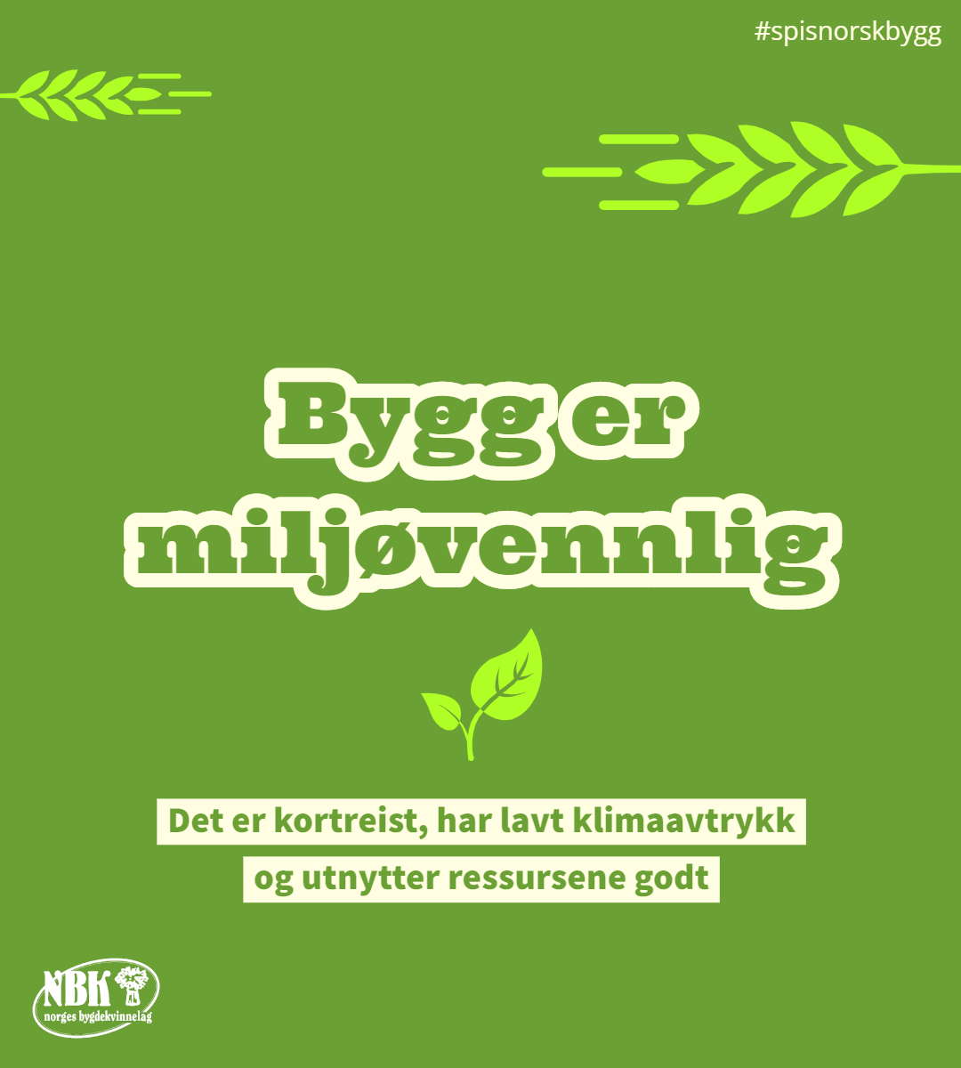 En forutsetning for global matsikkerhet og bærekraftig matproduksjon er at ethvert land utnytter mulighetene de har til å produsere så mye mat som mulig innenfor bærekraftige rammer og naturlige forutsetninger. Når det gjelder kornsorten bygg, har vi nordmenn sovnet i timen. Bygg er en kornart vi kan og bør spise mer av. Det er en god utnyttelse av norske ressurser, det er kortreist og miljøvennlig, det vil bidra til verdiskaping, det er god distriktspolitikk, og ikke minst: det vil komme både forbrukerne og folkehelsen til gode.