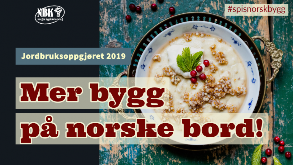 Et samlet jordbruk krever i årets jordbruksforhandlinger tiltak som styrker produksjon av korn til mat, og som øker bærekraftig matproduksjon på norske ressurser. Her må norsk bygg få en naturlig plass. Årets jordbruksavtale må derfor sette av midler for å utløse det spennende markedspotensialet bygg til mat har.
