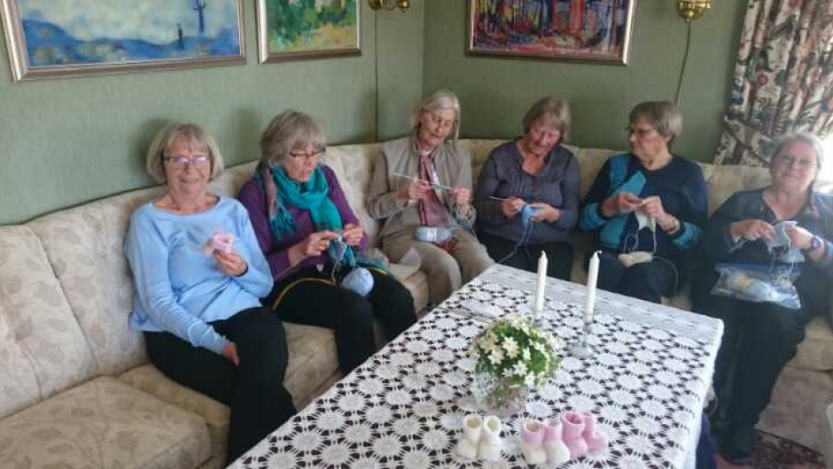 Vi er en munter gjeng damer i vår "beste alder" som treffes hver tredje uke til hyggelig lunsj, klirring med strikkepinner og livlig prat!