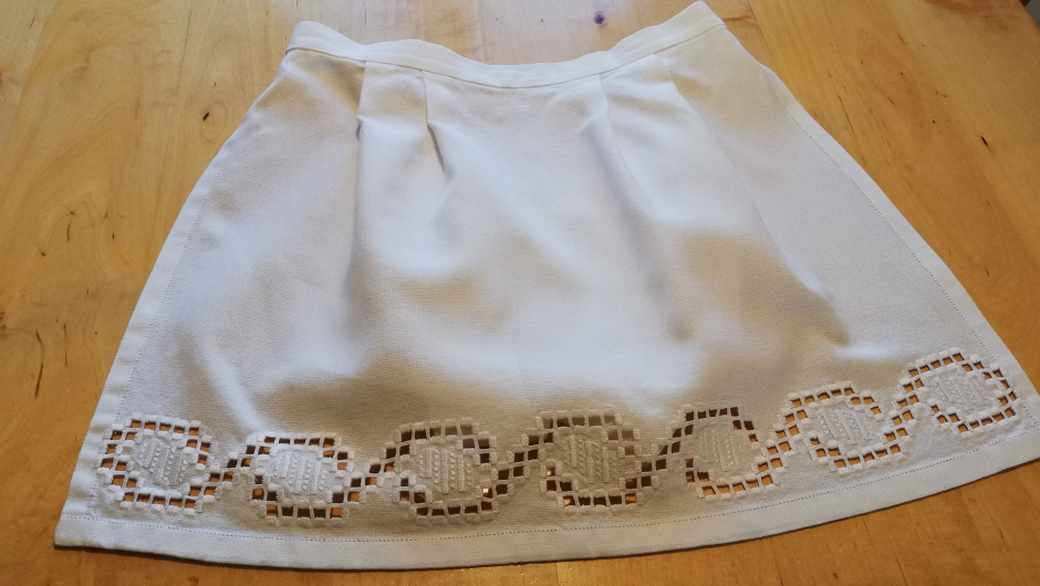 Det hele startet med at noen av oss for mange år siden gjerne ville lære Hardangersøm. Vi var så heldige at vi hadde et medlem som er ekspert på akkurat dette, så da ble det et kurs i brodering. Husker at vi sto i kø for å melde oss på. Vi startet litt forsiktig med en liten kant på noen forklær som ble riktig fine. Mitt forkle har til og med vært i bryllup og jeg tror ingen av de andre serveringsdamene hadde tilnærmelsesvis så fint forkle som meg! I tillegg ble det en duk til kaffebordet.