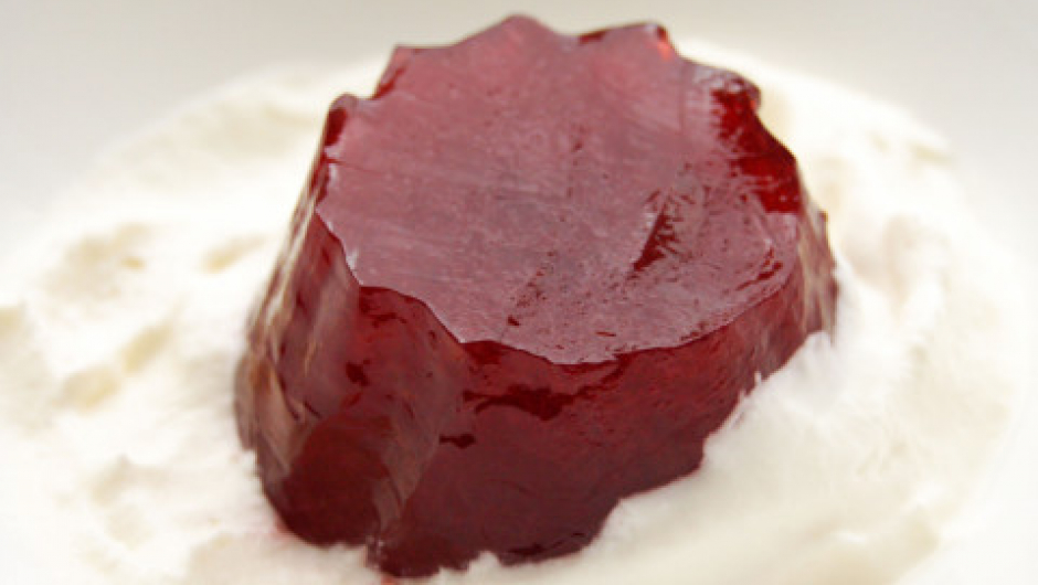 Rød gelé kan lages på tilsvarende måte som hvitvinsgelé. Bruk god, litt sterk saft.