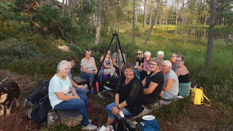 Sommerferien er vell overstått og det første medlemsmøte startet med natursti til Tjønna Tjønna. Vi var heldige med været og 14 glade damer tok beina fatt fra parkeringen og fulgte stien mens de løste gåter under vegs. Vell fremme på Tjønna Tjønna blei det fart i bålpanna, kaffen kom på kok og så var det pølsene sin tur. Hanne-Gudveig Stærk hadde med seg en nydelig sjokolade kake som vi kose kan sammen med kaffen. Det var en lystig prat rund bålet samt litt planlegging fremover mot juletider.