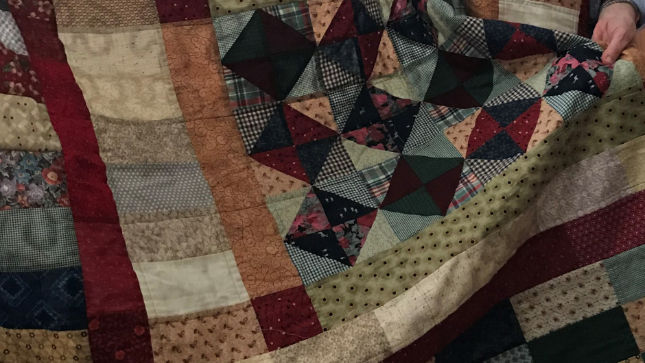 Kirsten Landsverk viste frem et flott lappeteppe som inneholdt historier om ulike familiemedlemmer. Teppet besto av et gammelt skjørt, en gammel skjorte og et putevar. Det var også sydd inn en del stoffrester og mønsteret i teppet besto av annenhver lys og mørk farge Kirsten viste også frem arbeidene til:
