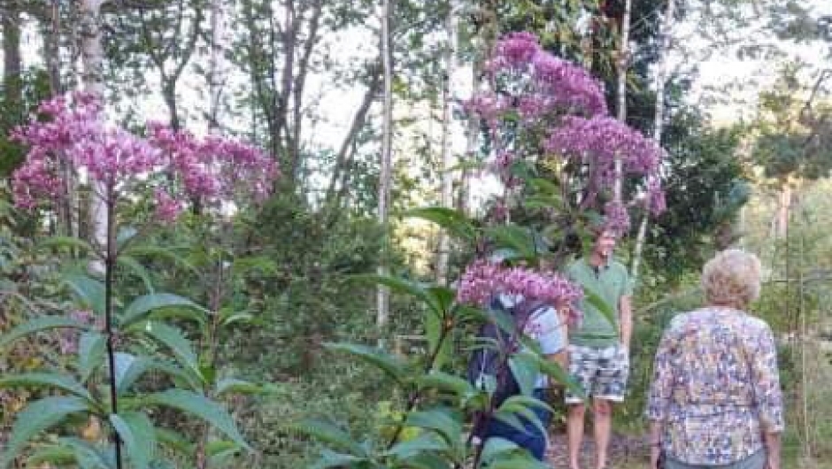 Vi fikk omvisning i en flott og annerledes hage og skog/skyggehage med et rikholdig utvalg av nytteplanter, stauder skygge- og surjordsplanter og busker.