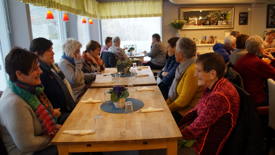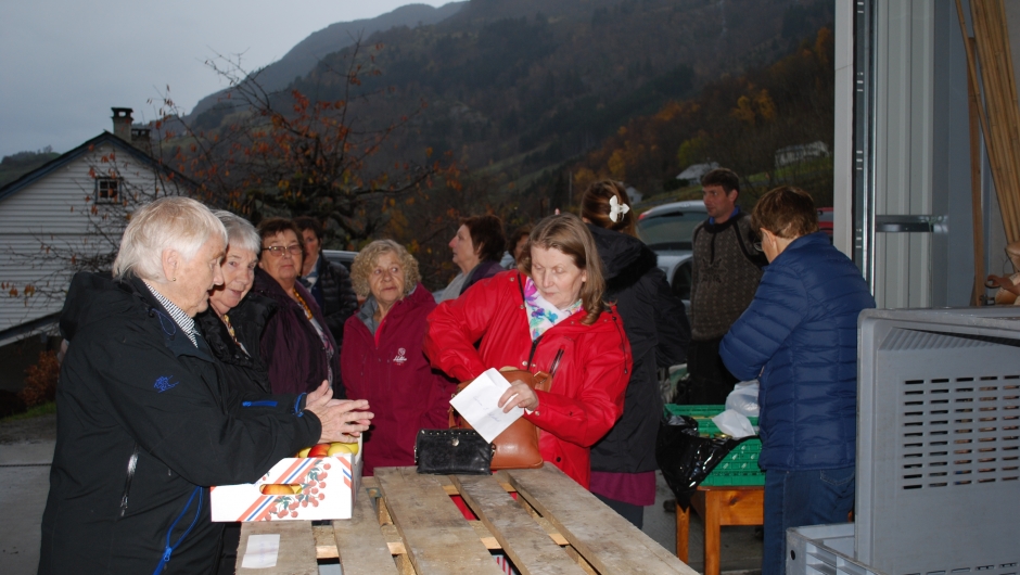 Atter ein gong har Skare Bygdekvinnelag vore på epletur. 1.november møtte i alt 22 damer opp i Skarsmo (21 pluss 1 kom på i Oddda) kl. 12. 00. Vi fylte opp seks bilar og og la i vei. Turen var planlagt som ein kombinasjon av noko hyggeleg para med noko nyttig. På rad og rekkje køyrde vi til Lofthus med planlagt stopp ved "Kompaen" ein hyggeleg kafe og "bistro" Dette var eint anbefalt serveringsstad der dei skulle ha svært god mat. Vi blei teken godt imot og fekke tinge den maten vi ynskte. Torsdag var også komledag og mange ville ha komla. Elles ble det både hamburger og sandwich og anna godt. Veldig god mat sjøl om lokala godt kunne vore varmare. Dei hadde og mykje anna godt og det vart handla både ostar og sider og anna snadder. Gode og mette for me derifrå med kurs for Sekse - og eplegarden der me har vore faste kjøparar i fleire år. Gode Elstar epler vart handla i kassevis sammen med nylaga honning.