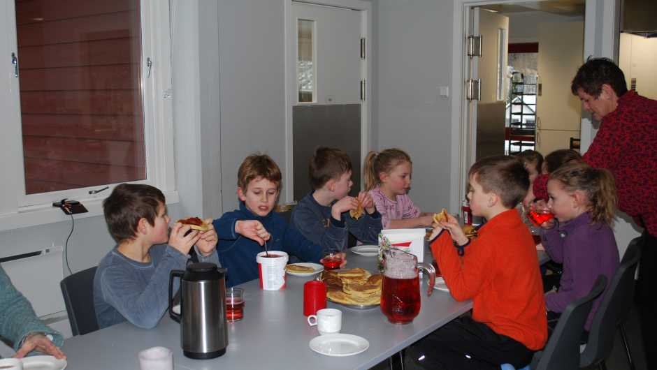 Alle elevane var ivrige etter å komme i gang med måling av mjøl, mjølk og sukker, og litt hevingsmiddel. Takkene stod varme då røra var ferdig laga. Alle elevane fikk steika lappar. To av elevane var ikkje på skulen denne dagen. Etter et kort friminutt var det inn for smaking av baksten. Dei koste seg og praten gikk livlig. Dei delte lappane som var igjen, og glade og ivrige for dei ut med kvar sine posar med lappar.