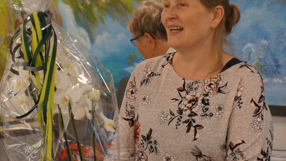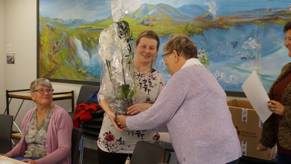 Blomst blei og overrekt Gunvor. Vafler og deilig kake blei servert.