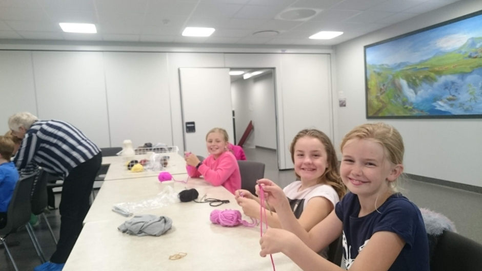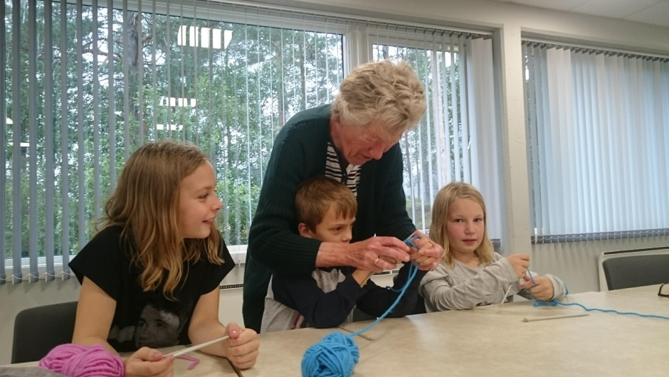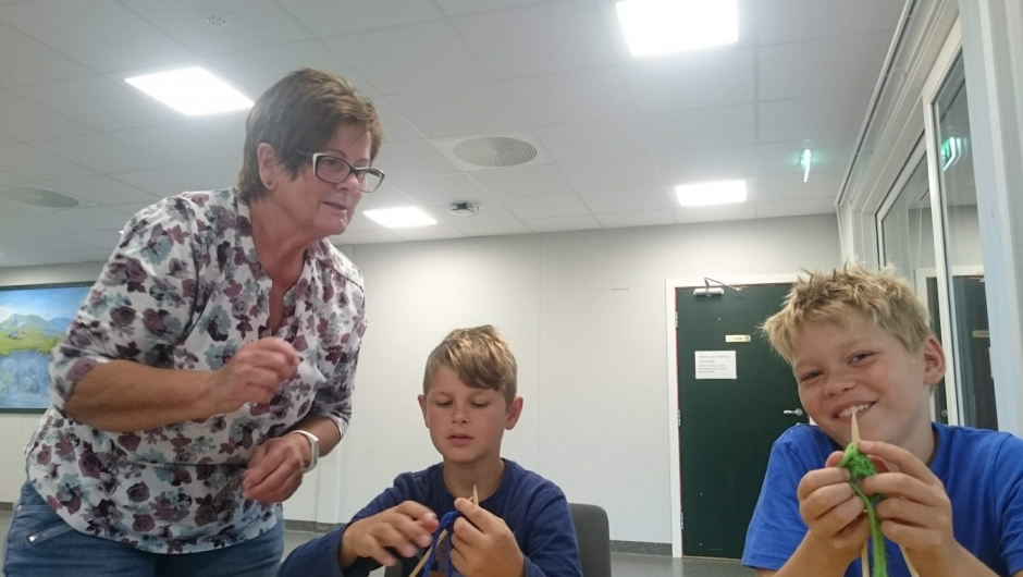 4 damer fra laget, Grete, Torhild, Ingunn og Ingrid hjalp til med å lære 4.klasse strikking. Ingunn skriver i ein epost at det gikk fint og 10 elevar klarte alle å verta ferdige med kvar sin sommerfugl.