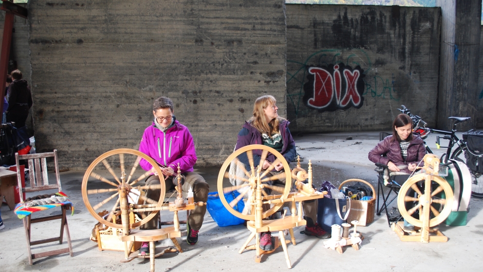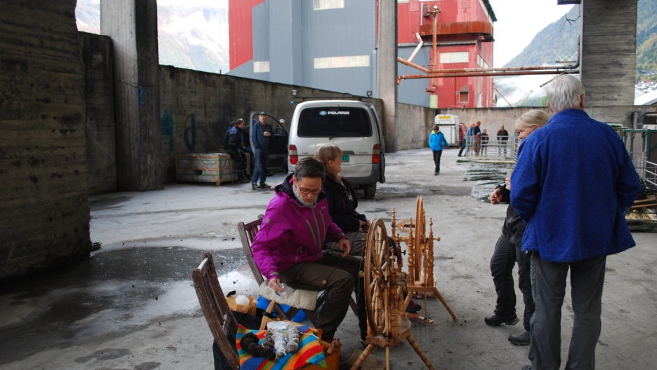 3 "spinnedamer" var der også med rokkane sine og dei spant fint garn. Kjekt for publikum å få se rokkane i bruk..