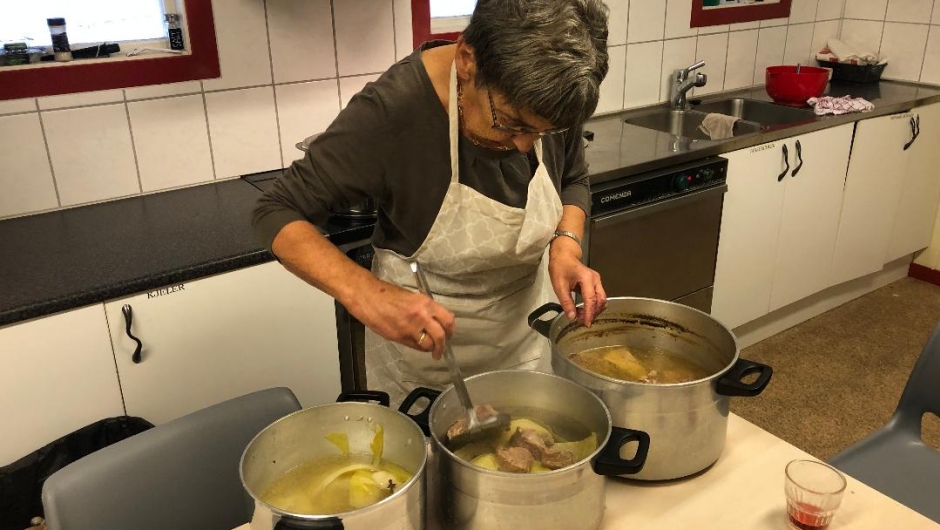 Vi lagde lammefrikassé, lammeburger, fårikål, lårsteik, salta kjøtt med potetball og greske kjøttboller. I tillegg hadde vi tzatziki og rømmedip, og hadde kålrabi, gulrøtter og poteter til.