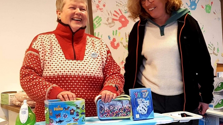 Til mødrene som har kommet (og fremdeles kommer) sammen med sine barn er det kjærkomment med strikkegarn, heklegarn, strikkepinner, heklenåler og annet tilbehør.