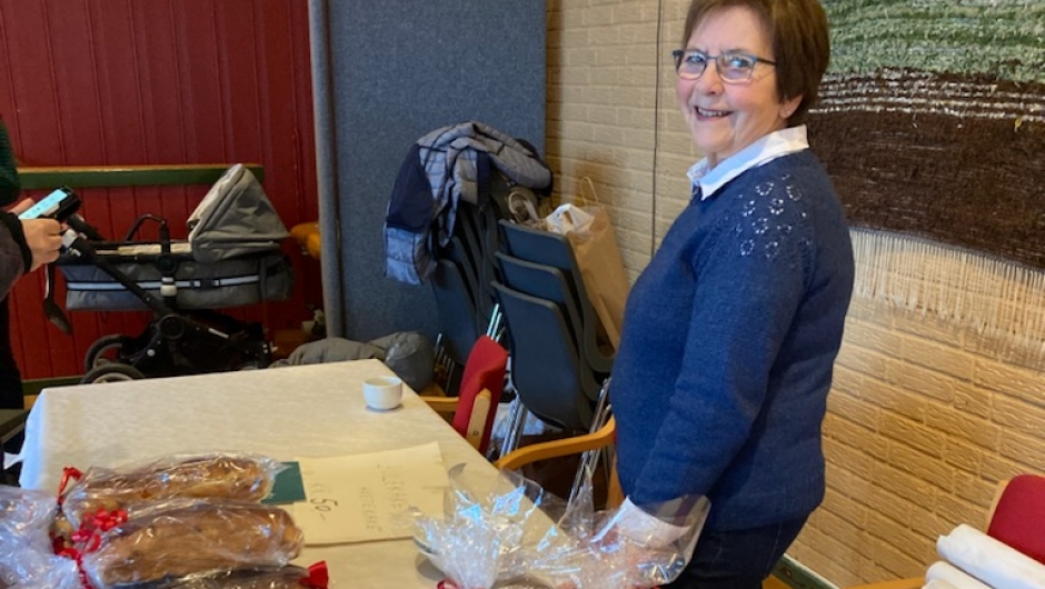 Vi hadde salg av småkaker, julekake og hvetekake, Julemarkedet var godt besøkt,og vi solgte 32 kg grøt.