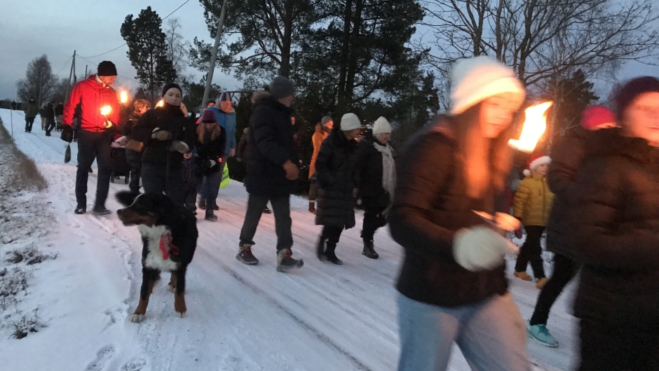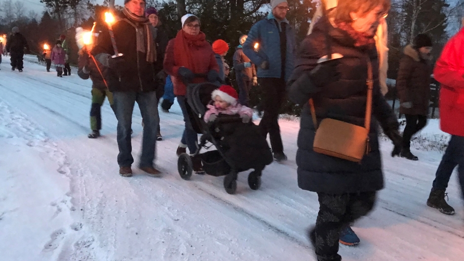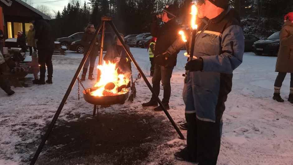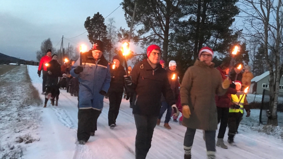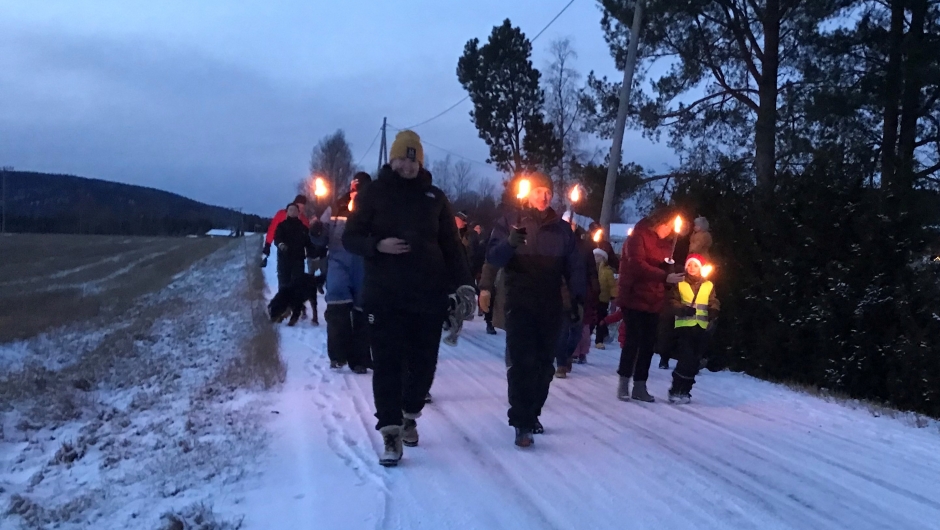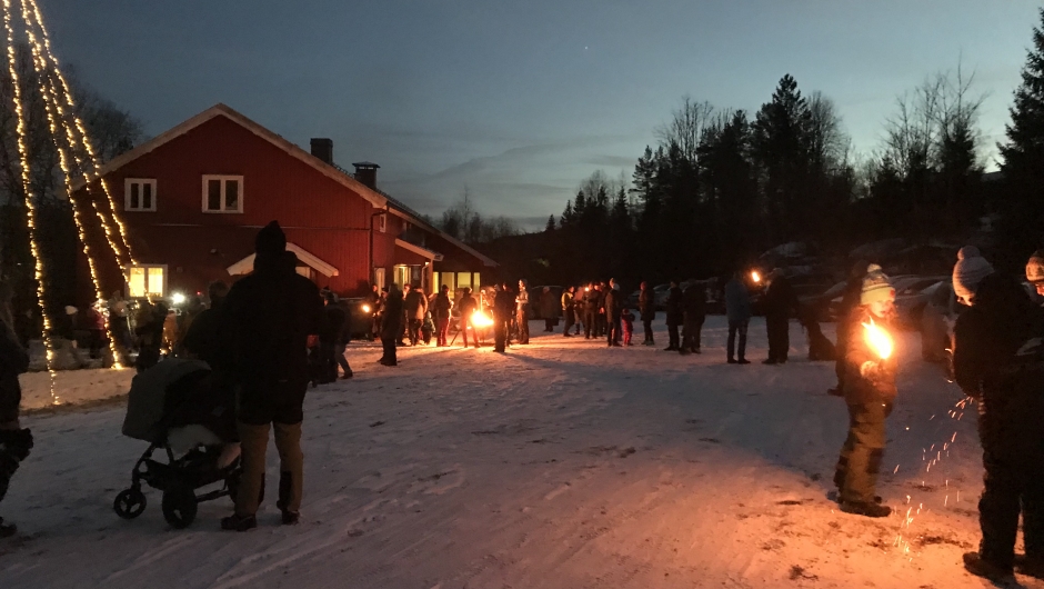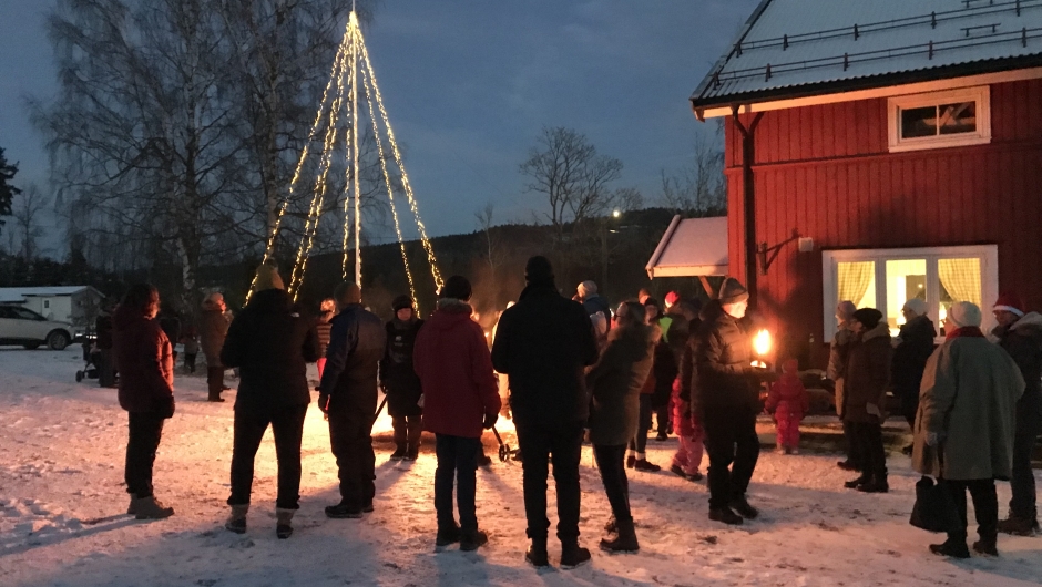 Plutselig var vinteren der med snø som gjorde det ekstra hyggelig da vi markerte starten på adventstida. Etter gudstjenesten i Vassås kirke startet forventningsfulle barn og voksne med fakler i "den blå timen", men da fakkeltoget kom til Granly grendehus var det allerede ganske mørkt. På Granly ble vi møtt av Vassås Tut & Blæs, fyring i bålpanna og bygdedamer som serverte gløgg og pepperkaker. Julelys ble tent i flaggstanga, gange rundt juletreet og julesanger med toner fra korpset. Imponerende av Vassås Tut & Blæs som holdt ut i kulda og gledet oss med mange kjente sanger. Takk til dere som laget en trivelig ramme for oss som møtte til 1. søndag i advent arrangementet i Vassås.
