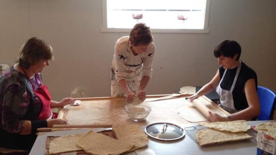 Frå fredag føremiddag til sundag ettermiddag har det vore baking av flatbrød og kråtekake i Solheim. Laurdag og sundag var det kurs. Før og i mellom kursa var det åpe for medlemmar, som hadde lyst å prøve å bake litt sjølve. Det har nok aldri blitt produsert så mykje kråtekake og flatbrød i Solheim før, som denne helga. Det var god stemning frå tidleg til seint. Fire av kursdeltakarane ville melde seg inn i laget vårt. Slikt er alltid like morro, så dette må me nok gjere fleire gonger !