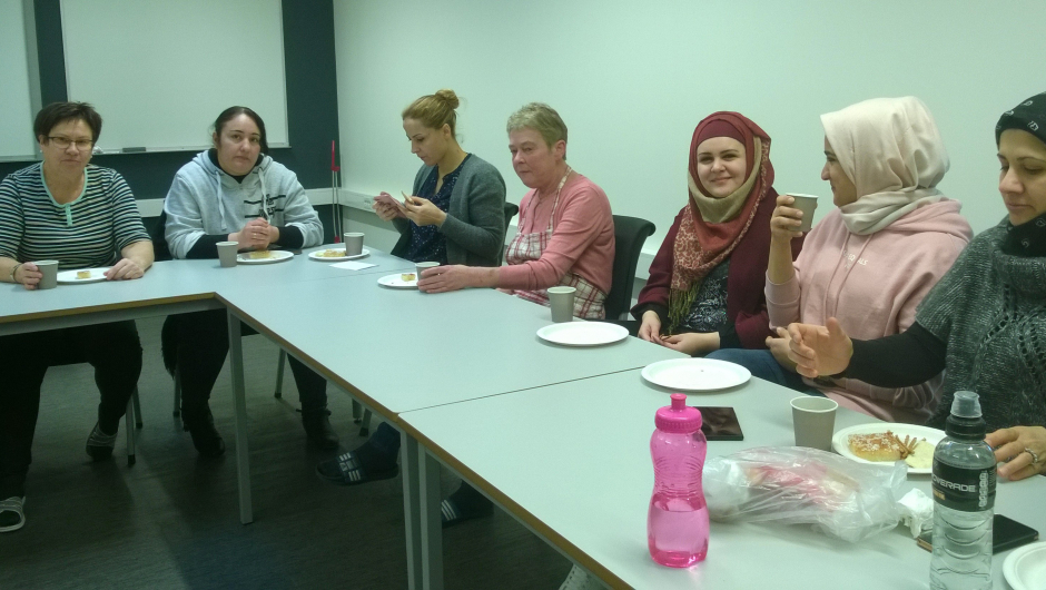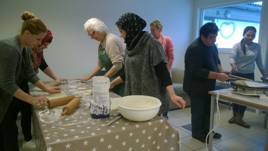 et minikurs om norsk tradisjonsmat til våre nye landsmenn ved å invitere dem til å lage tynnlefse.