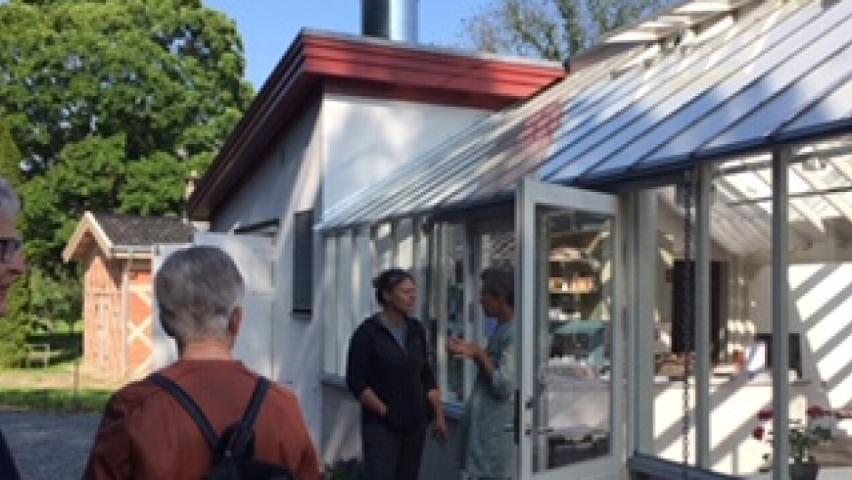 Medlemmer av RBK med venner utgjorde 43 deltagere. Vi hadde leid buss fra Råde med avgang kl.16. Det ble en nydelig varm og fin sommerkveld. Et av våre nye medlemmer, Dorthe Johansen, hadde lagt opp turen og omvisning i samarbeid med prosjektleder Marianne Leisner. Gartneriet, som nå eies og drives av Statsbygg, er en del av gårdsbruket på Bygdøy Kongsgård. Det ble opplyst at Bygdøy Kongsgård er den største leverandør av økoligske melk til TINE . Et allsidig hagebruk er koblet til gårdsdriften. Alt blir dyrket økologisk, og gartneriet var delvis bygd opp av gjenbruk. Blandt annet var belegningsstein tidligere vært i bruk på Aker brygge-. Drivhuset var fylt opp av tomatplanter, og vi var velkomne tilbake senere for å kjøpe både tomater og alle andre økologisk dyrka produktene senere i sommer. Gartneriet holder kurs, seminarer, utstillinger og kafétilbud som skal speile produktene på Bygdøy Kongsgård. Vi fikk tilbud om bl.a kurs i poding av frukttrær.  En utrolig fin og lærerik kveld. Bussen kjørte en rundtur rundt Bygdøy før hjemreise til Råde.