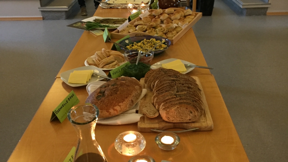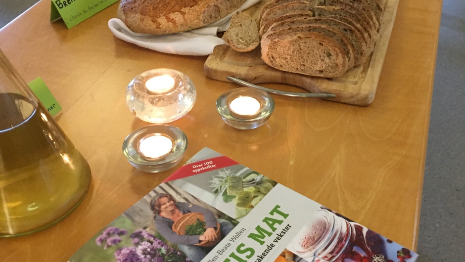 På møtet 15. mai hadde styret og medlemmene som hadde bevertningen for kvelden, laget i stand drikke, mat og kaker laget av ville vekster. Her var det stor variasjon og mye spennende. Møtet skulle egentlig vært holdt utendørs på Glommastien, men vi valgte å flytte møtet innendørs på grunn av det sure været. Det ble en hyggelig kveld på Grendehuset. Karin Rostad underholdt oss med å lese utdrag fra et hefte som het "Den gamle Urtegård" (Borgarsyssel museum).  Det var mye interessant og moro å høre om gamle kjærringråd og råd. Inger-Rikke hadde med sangbøker, så vi sang og kom i vårstemning!