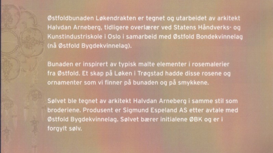 Originaltegningene til Østfoldbunaden Løkendrakten er det kun Østfold Bygdekvinnelag som har. Det er kopi av disse tegningene som våre forhandlere bruker.