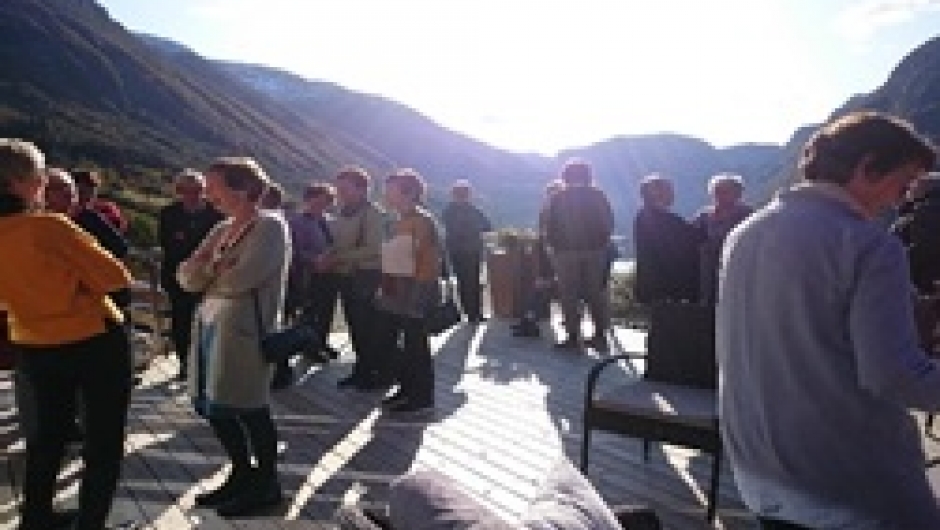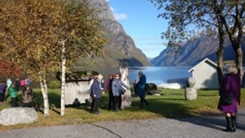 Hilde Gunn Ommedal fortalde engasjert om Hyen og Colombusparken, der vi samlast i nydeleg ver og omgjevnader etter foredraga.