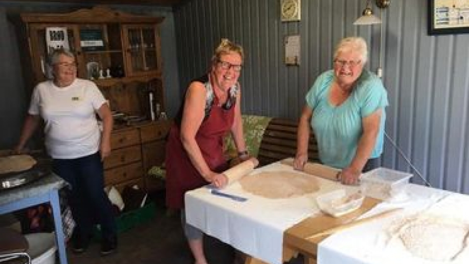 I bakerovnsrommet blei det demonstrert flatbrød baking og steiking av brød i bakerovn.