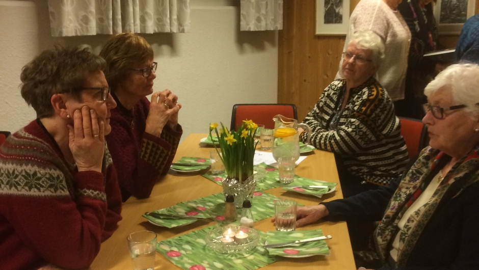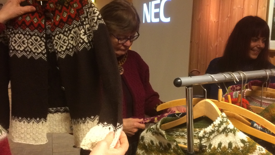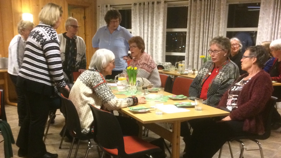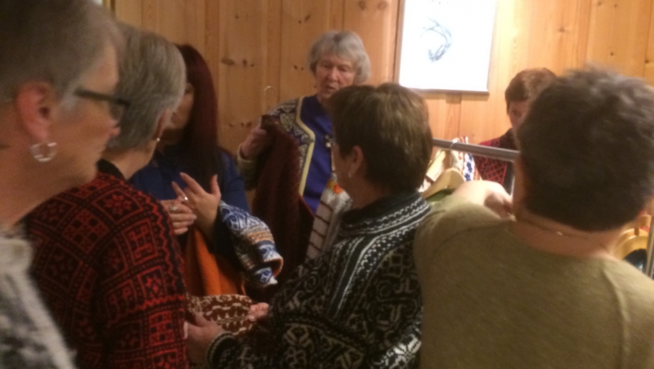 Skjeestua blei fylt med flotte kofte kledde bygdekvinner fra lokallagene i Sandefjord kommune. Vi blei ønsket velkommen av leder i Sandar Bygdekvinnelag, Camilla Botne. Tone Loreng fortalte oss om de norske ullvarefabrikkene og deres histore. Vi fikk se og høre om hvordan mønstrene blei til, og at de første mønstrene kostet bare 25 øre. Etter en fin framføring blei vi servert småsuppe kokt på salt svinekjøtt og med masse rotgrønnsaker. Før kaffe og kaker var det en utlodding hvor inntekten gikk til et proskjekt "dråpen" i Bolivia.