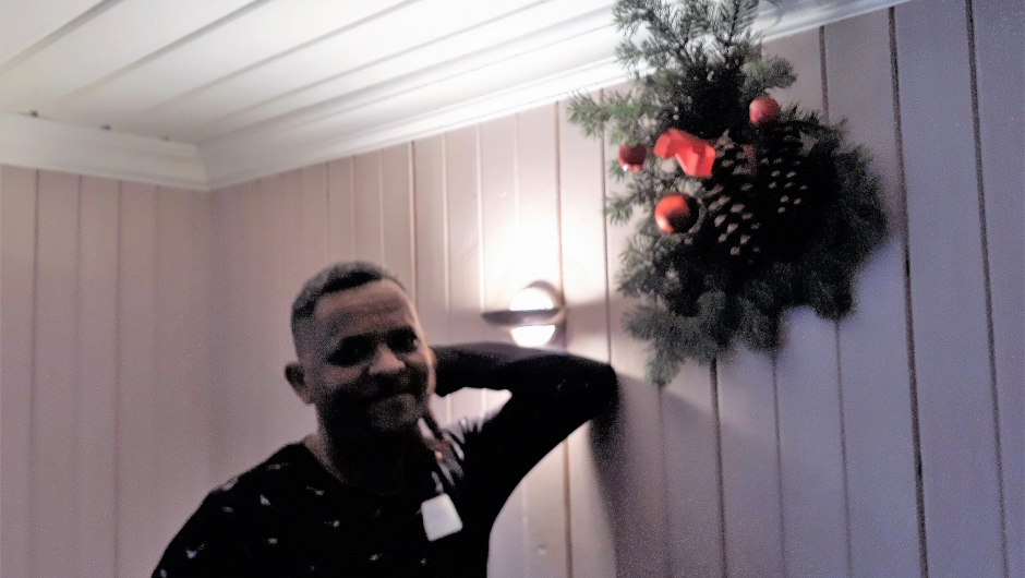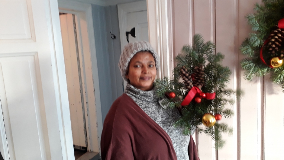 Mandag 10. desember kl. 8.30 hentet vi seks fra innvandrergruppen vår til juleaktiviteter på Bryggerhuset. Tre kvinner og tre menn skulle bake Berlinerkranser og lage dørpynt.I tillegg til fire entusiastiske bygdekvinner var lærer Karen med og Rose blomsterbinder var instruktør og hjalp oss med dørpynten.Gruppen vi har hatt kontakt med er positive, interesserte og aktive personer som det er trivelig å være sammen med. De fleste kan foreløpig ikke så mye norsk, men vi merker at ordforrådet blir bedre for hver gang vi møtes, og det er flott å oppleve.Stort sett klarer vi å komme til en felles forståelse ved å benytte alle former for kommunikasjon.