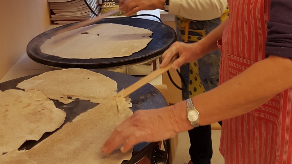 Kunsten var å få kjevlet leivene tynne nok og få de over på takka, slik at de ikke røk. Trygve var en super lærer, og alle var fornøyde med å ha laget både flatbrød og lefse til jul.