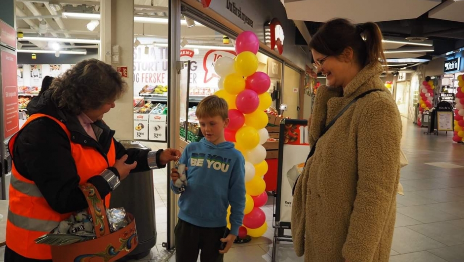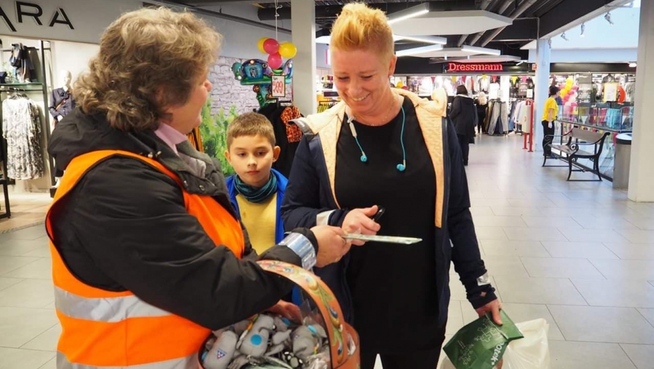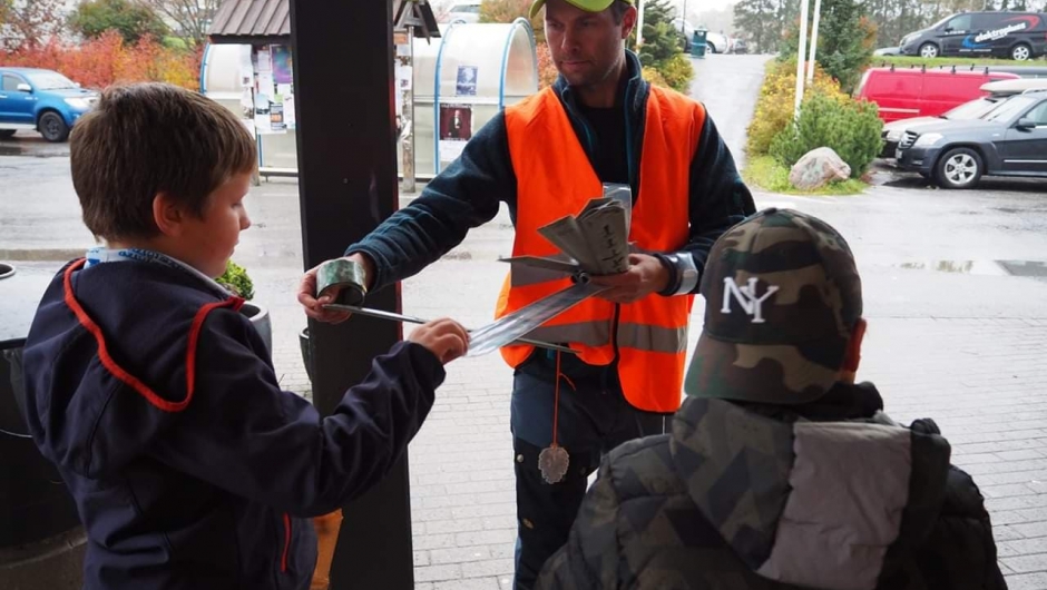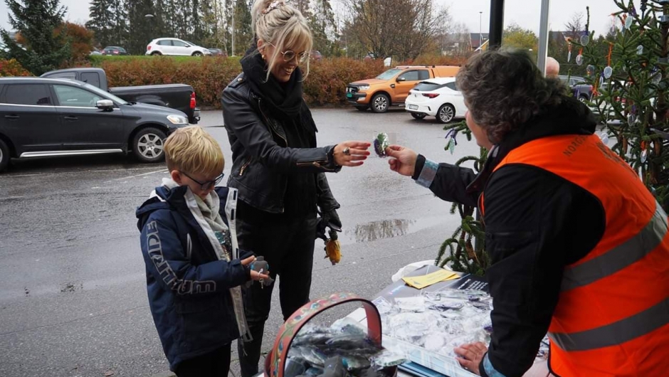 Therese Johaug har designet årets refleks, som har fått form som en kongle. Gran med kongler ordnet Vegar Hvamb i skogselskapet. Mange hyggelige mennesker som mottok refleks gjorde dette til en meget meningsfull ettermiddag!