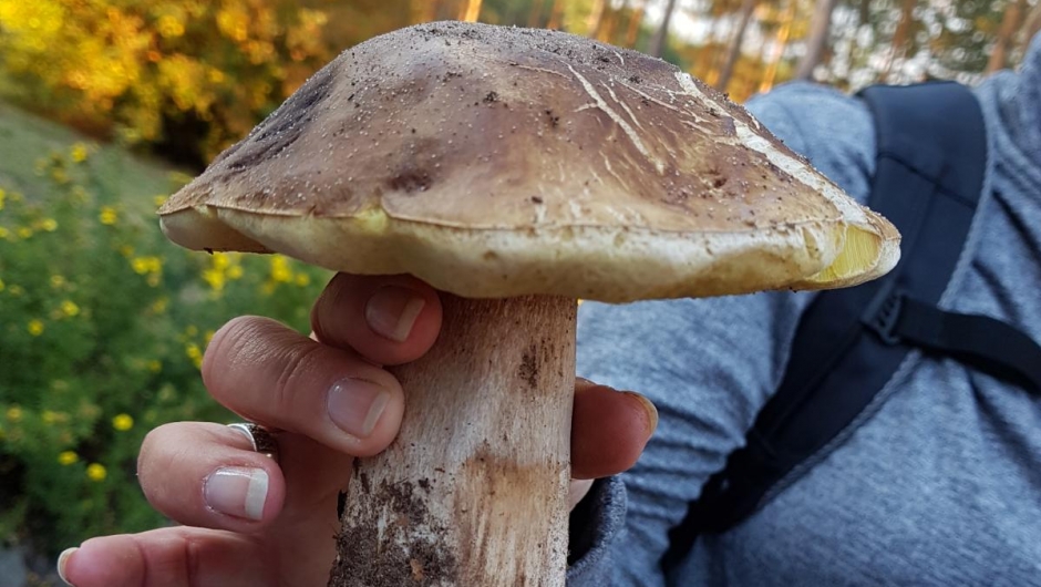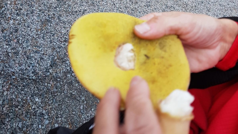 Noe steinsopp ble funnet, men hjortelusa var mer tallrik. Marte O. lærte oss litt om forskjellige sopper, bl.a. at sandsoppen blir blå-grønn når den deles.
