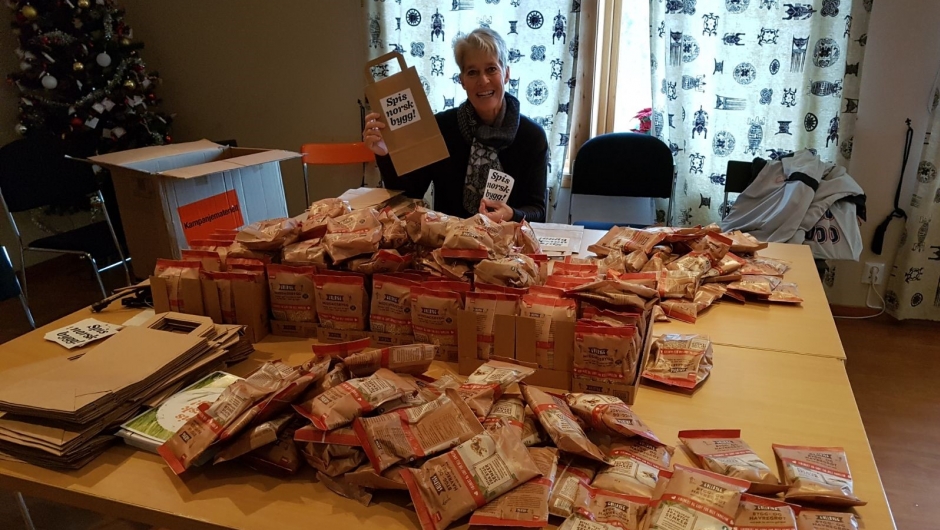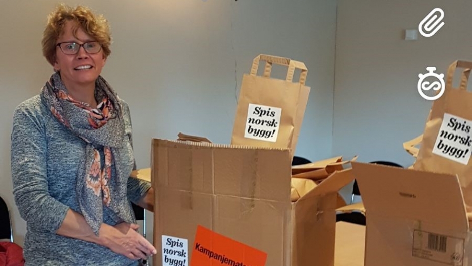 Det ble delt ut poser med gratis byggprodukter og brosjyrer med oppskrifter, i håp om at det skal bli brukt mer bygg i matlagingen i norske hjem.