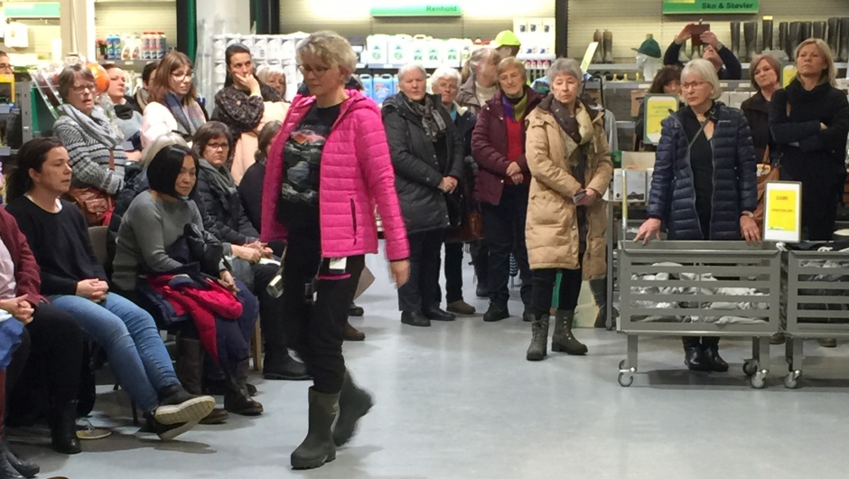 120 damer møtte opp denne kvelden. De fikk servert velkomstdrink før butikksjef Tor Solbergseter ønsket velkommen. På grunn av plassproblemer ble de fremmøtte delt i to grupper; ei ble ledet opp i andre etasje til Ulf Morten Hesbøl fra Felleskjøpet Eidskog og Mette Hagemo fra Hagemo planter, de andre fikk se mannekengoppvisning i butikklokalet.