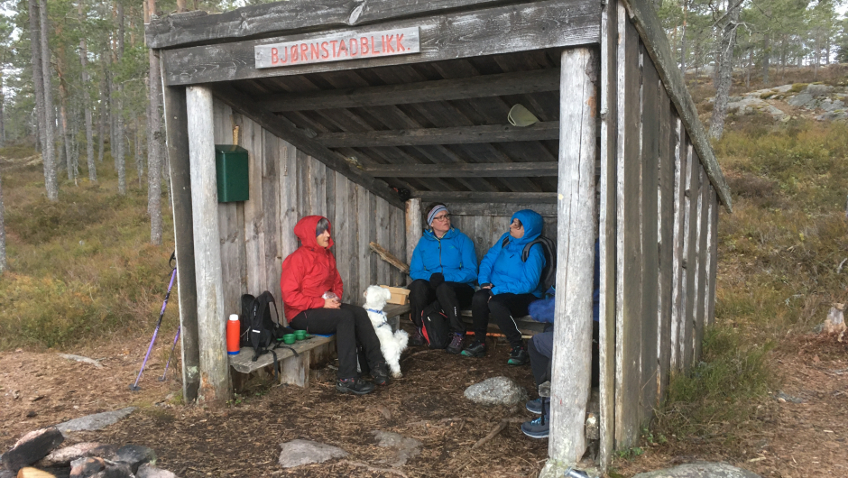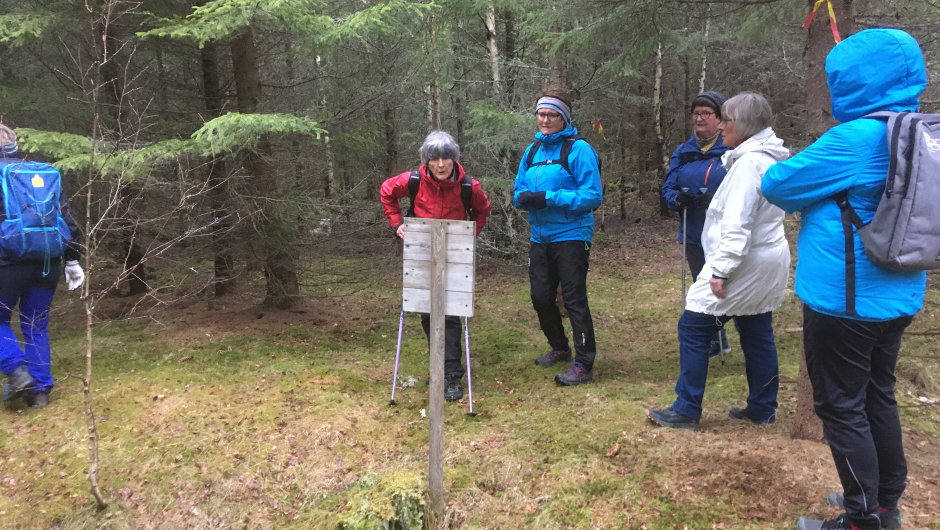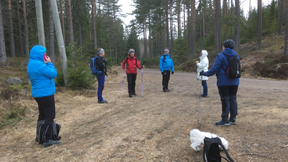 Første treff ble en fottur i nærområdet med Rønnaug Børresen som guide. 7 medlemmer i bygdekvinnelaget trosset kulde og litt regn denne tirsdagskvelden. Vi møttes på Bjørnstad og gikk derfra opp i skogen til Ringshellavegen. Fulgte den forbi mobilmasta ved Bråten/Sletholen til vi kom til Kongbråten (en gammel boplass). Derfra gikk vi på stien til den gamle boplassen, Høgda. Der bodde forfedrene til den kjente alpinisten Stein Eriksen. Fulgte så stien videre til gapahuken ved Bjørnstadblikk. Der koste vi oss med utsikten og det vi hadde i sekken. Kulden gjorde sitt til at vi ikke orket å sitte så lenge før vi gikk stien ned igjen til Bjørnstad.