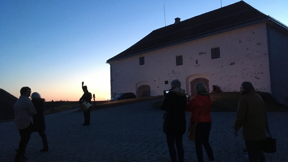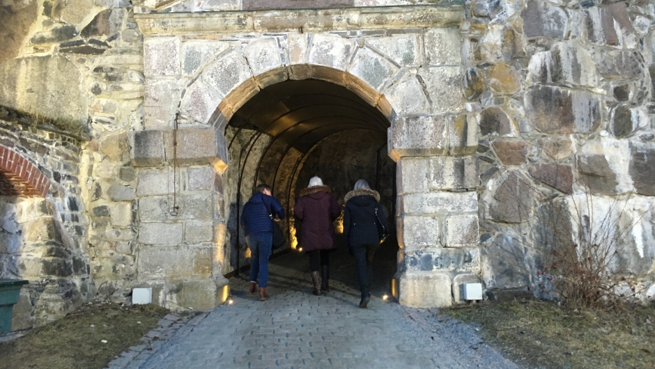 Øyvind Roos holdt et fint foredrag om festningen og dens historie, krydret med noen artige historier som fikk igang lattermusklene. I tillegg fikk vi en liten omvisning på festningen.