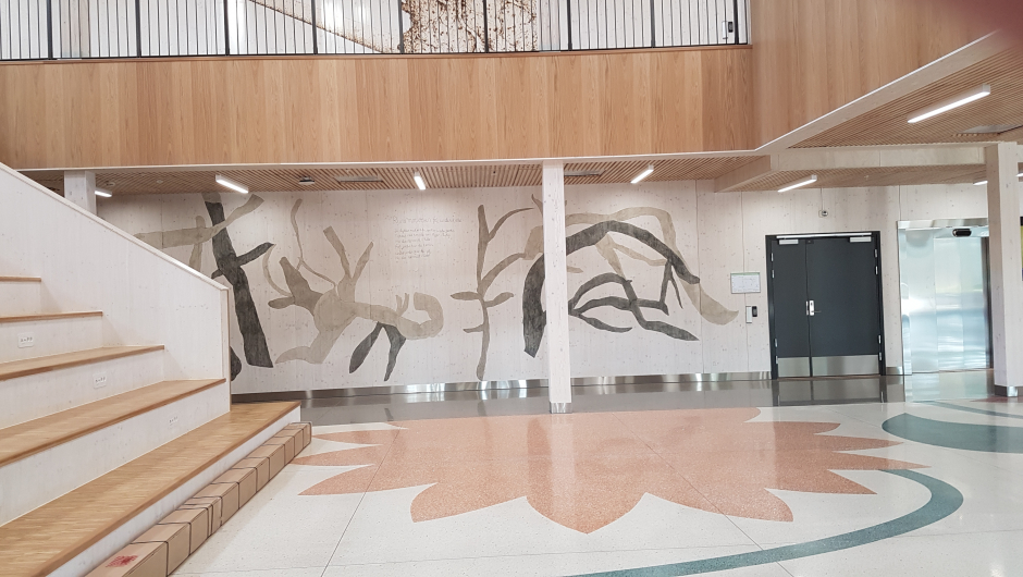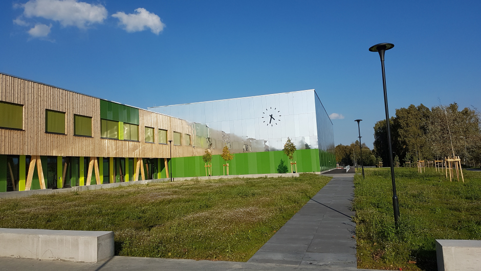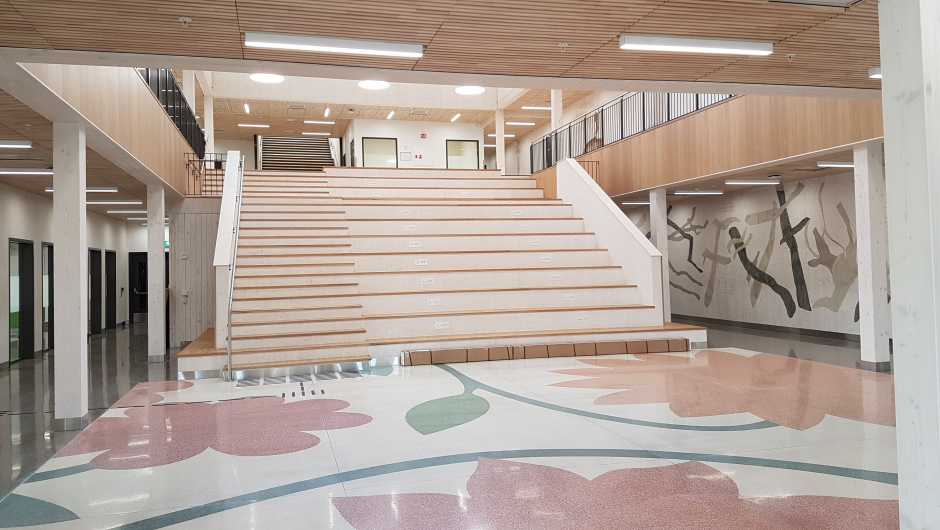 En lærer fra skolen hadde en kort orientering om byggeprosessen og litt om hva lærerne fikk være med å bestemme. Skolen er delt inn i 3 «områder». 1 for hvert trinn og virker derfor ikke så stor.