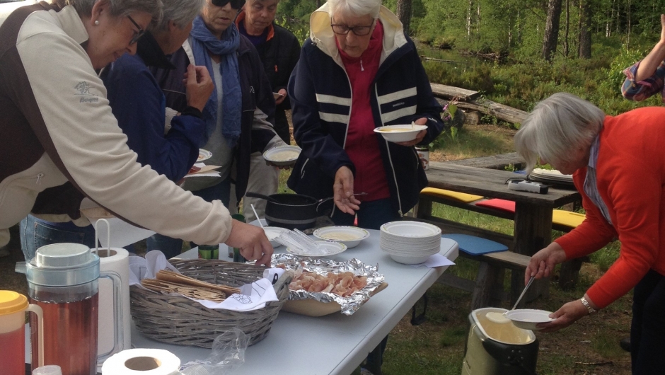 Det ble servert rømmegrøt, spekemat, flatbrød, saft, kaffe og kaker.