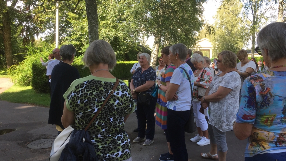 Første stopp var Sahlstrømsgården, hvor Bengt Sahlstrøm fortalte om gårdens historie. Der fikk vi servert rundstykker og kaffe. Så gikk ferden videre til Rottneros herrgård/park hvor vi ble guidet rundt av en engasjert dame som fortalte om gården og parkens historie. Blomstringen var litt på hell, men hun viste stolt frem statuene som står i parken.