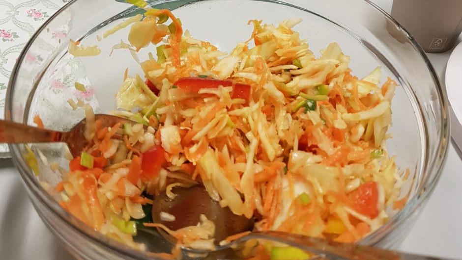 Bente Fjeld Moen informerte om/fra beredskapsplan. Hun ga oss tips om hva vi bør ha i reserve til en hver tid. Hun oppfordret oss til å tenke gjennom dette. Hun hadde med seg en «14-dagers salat» som hun hadde laget hjemme. Denne salaten er det lettvint å lage. Den er god, sunn og holder seg leeenge. Absolutt å anbefale også utenom krisetid! I tillegg viste hun oss hvordan vi kan lage hvitost av melk og kefir.