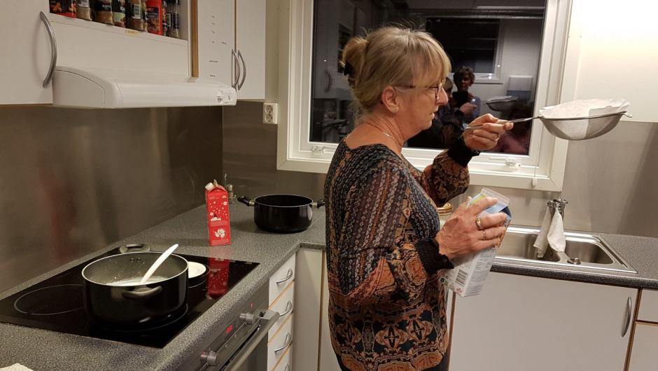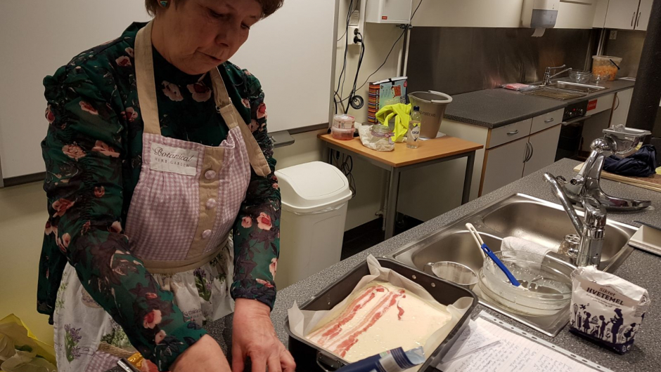 Elisabeth Trøhaugen fortalte om mattradisjoner og matkultur. Hun påpekte viktigheten av at vi fører mattradisjoner videre. Hun viste oss hvordan vi kan lage potetrisk med bacon i langpanne.
