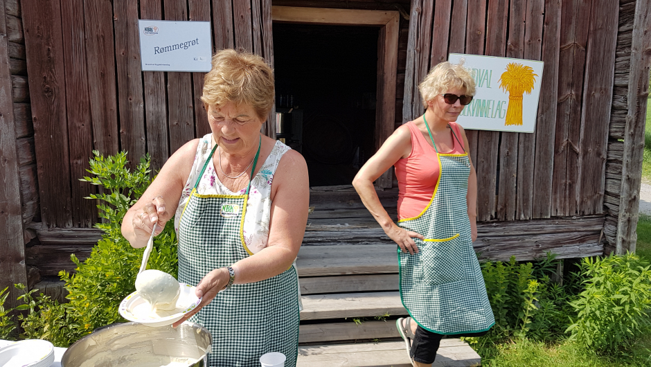 Brandval Bygdekvinnelag solgte/serverte rømmegraut med smeltet smør, sukker og kanel. Saft hørte også med. Nytt i år var fenalår og flatbrød, som falt i smak hos mange. Vi solgte mange tallerkner og fikk positive tilbakemeldinger om at grauten var god. Salg av rømmegraut har vært en tradisjon i mange år.