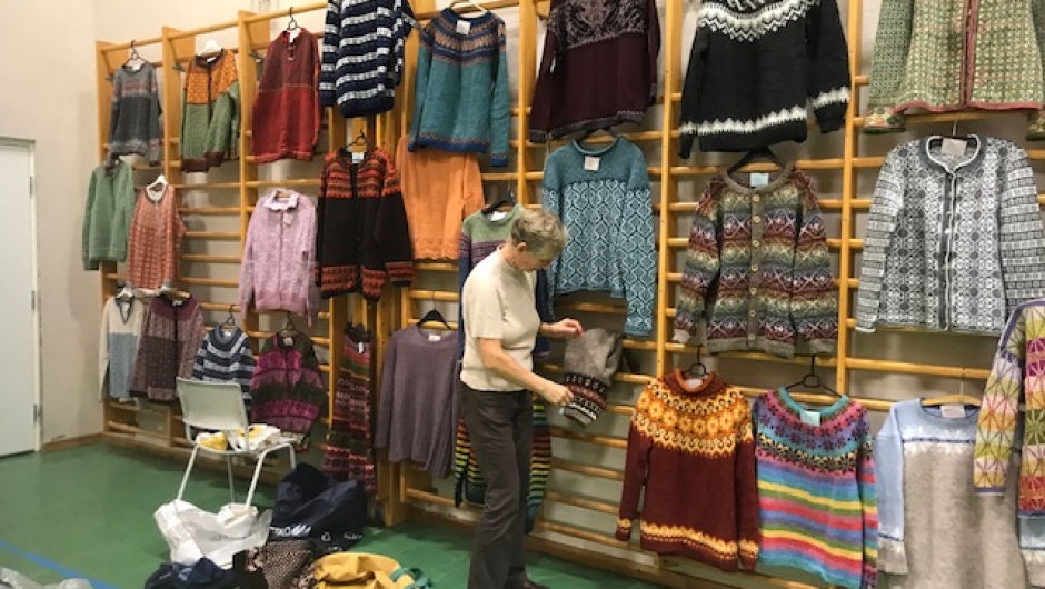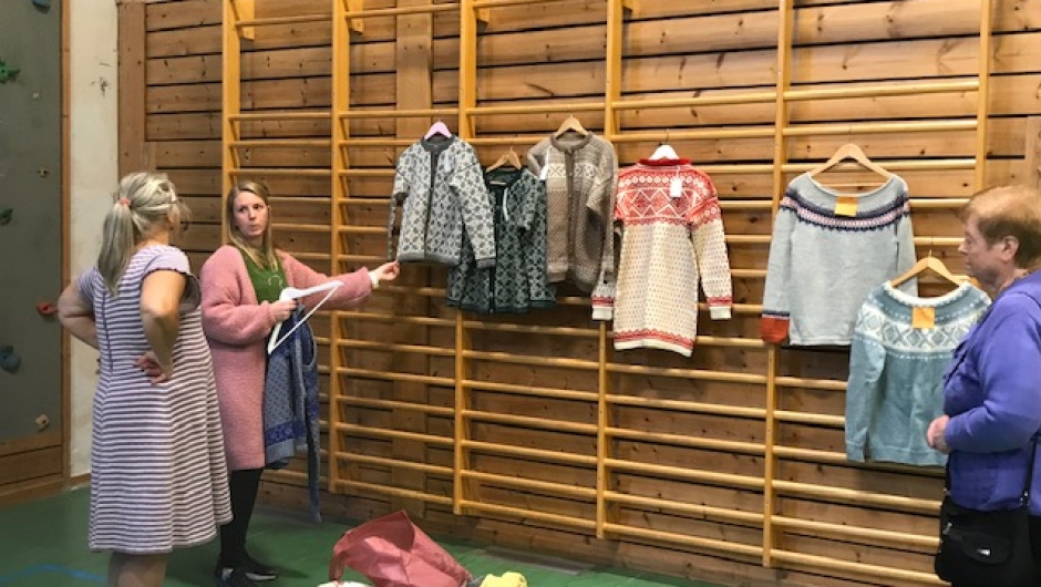 KOFTEUTSTILLING arrangert av Sandalen/Myklebust-roda og Strikkekafeen. Fantastisk masse fine kofter og andre strikkeplagg, og god servering. Det var interessant å høyre på Merete Knoff og sjå hennar arbeid. Ellers har vi mange flinke strikkarar i bygda. Mange tok turen og fekk vist fram sine arbeid. Takk for flott og inspirerande arrangement