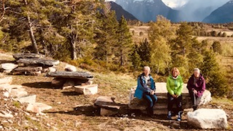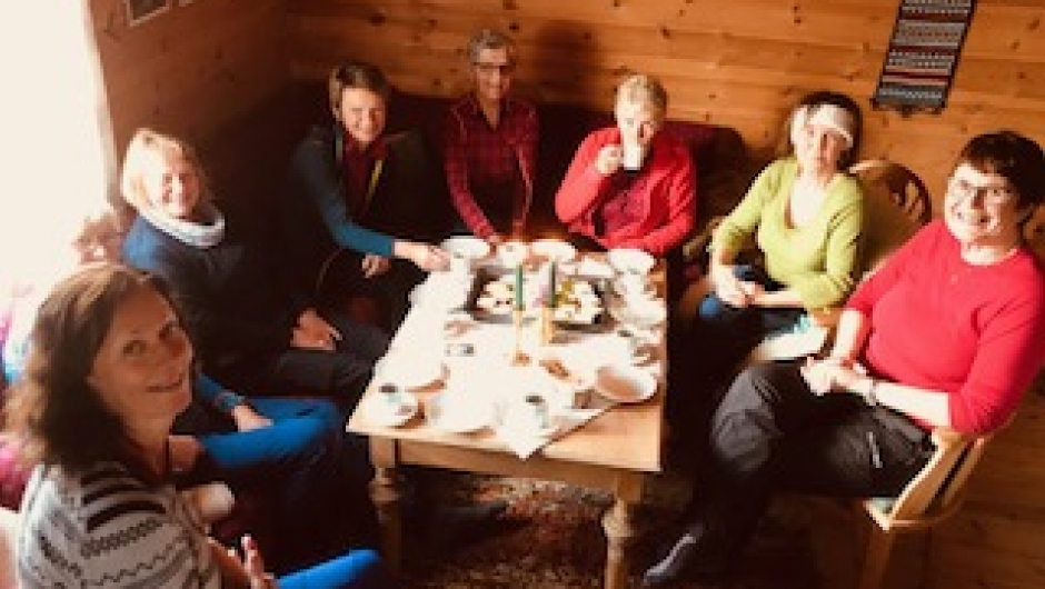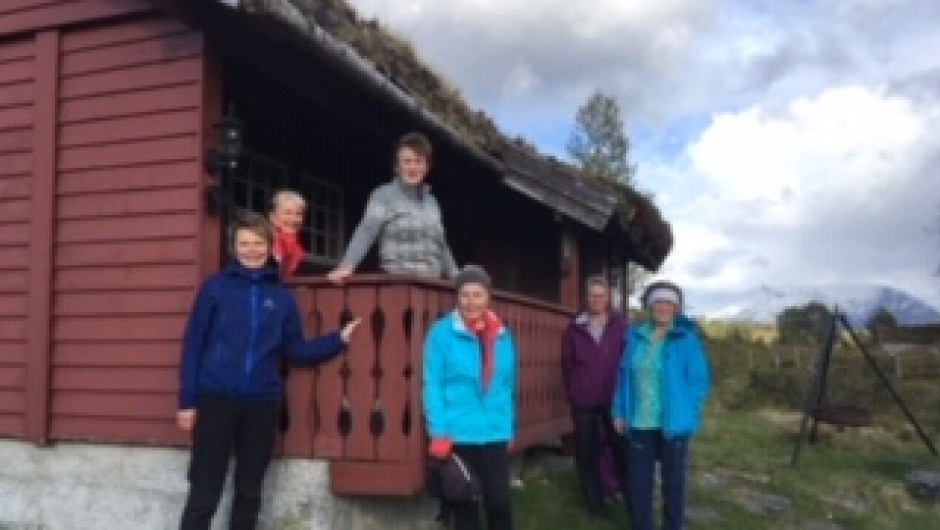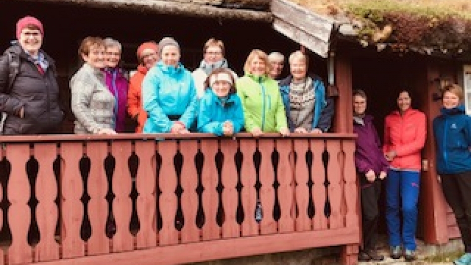 Vi var 14 damer som tok turen til Kvilastøylen og selet til Hilde. Vi hadde en liten spasertur opp Futevegen før vi gjekk tilbake til selet, der Hilde hadde fyrt slik at det var godt og varmt. Kjekt å komme inn i varmen etter turen der vi hadde både haglbyger og sol innimellom. Flott tur i lag med kjekke damer og storslått natur Stor takk til Hilde som stilte opp med ope "hus" for alle sammen.