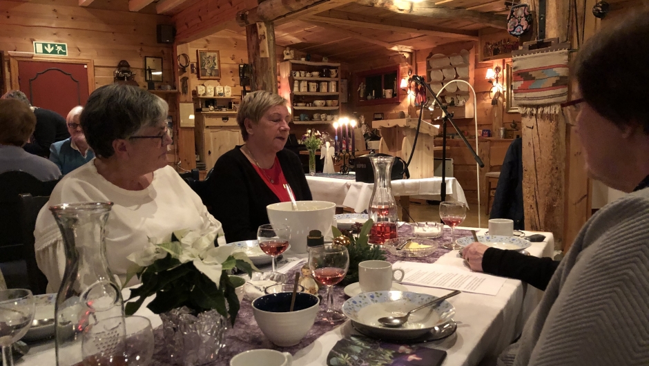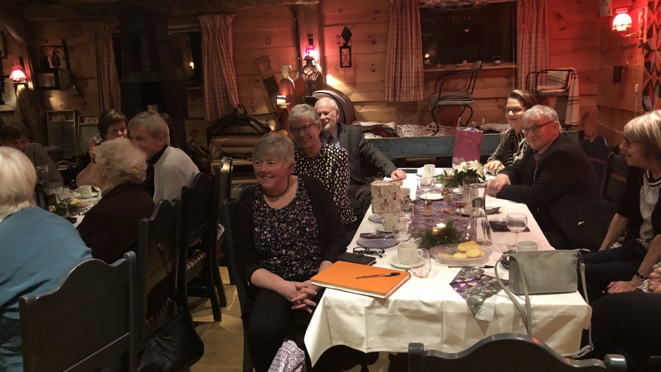 Advent møte i Peraløo 26 nov. 2018. Me fekk servert risengrynsgraut med tilbehør, det var veldig godt. Mennene fekk vera med oss denne kvelden ,og dei koser seg der dei sitter med "mannebordet"