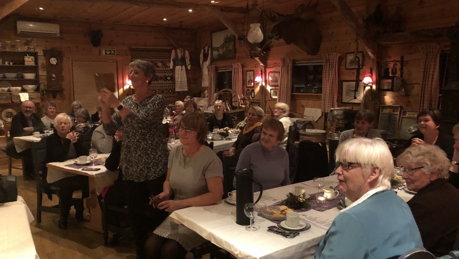 Muri leste dikt for oss,fint å høra på. Det vart servert kaffi og julekaker, før me gjekk over til åresalg , med mange fine gevinster, mange vant og andre ikkje, men alle gjekk heim rike på ein flott kveld ilag.