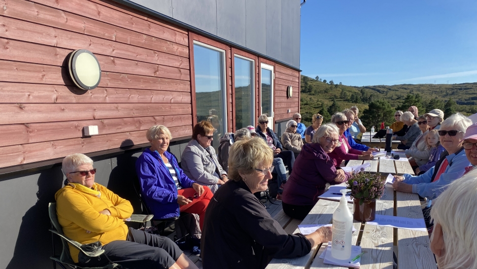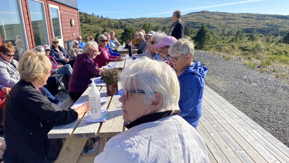 25 stykker var me denne flotte seinsommer ettermiddagen. Me hadde med oss nista og kaffi. Det vart fortalt mange gode stubber så lotten satt laust, ditklesing hadde me og. Elste medlem som me hadde med oss er 99 år, og ho kom sammen med to døtre, er så flott. Ellers hadde me litt allsang som altid skaper god stemning.