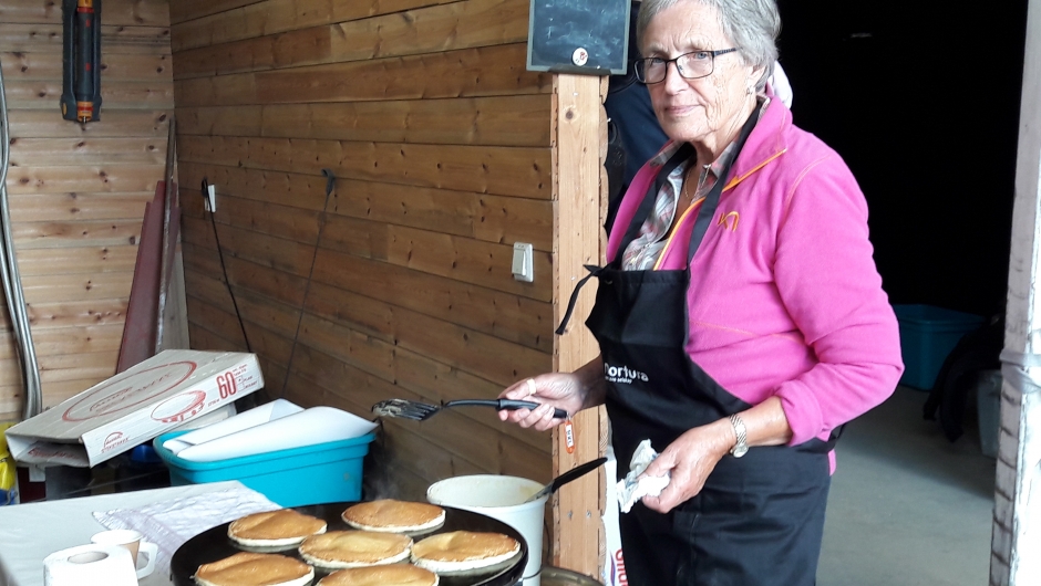 Åpen gård krever en innsats i forberedelser. Lørdag var det mange fra bondelaget som arbeidet på dugnad med å gjøre klar for søndagens arrangement. Bygdekvinnelaget sørget for servering av lapskaus til dugnadsfolket.