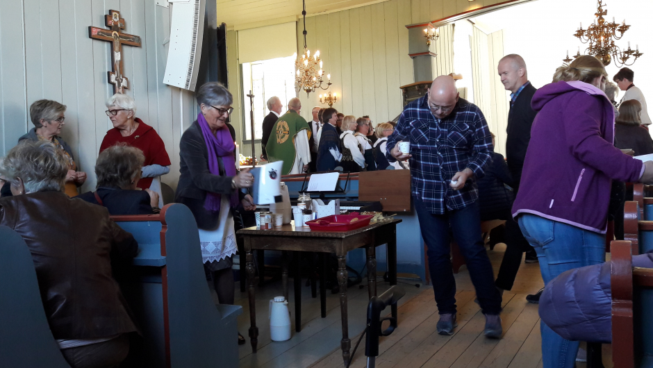Etter gudstjenesten serverte bygdekvinnelaget kaffe og kaker, noe som mange frammøtte satte pris på. Det ble mange gode og hyggelige samtaler over kaffekoppen.