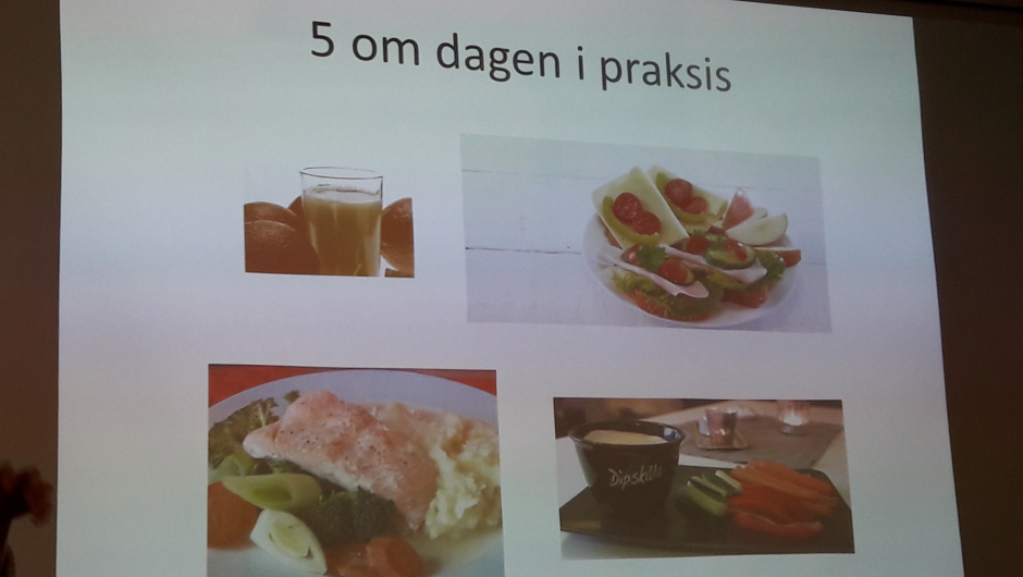 Ernæringsfysiolog Åslaug Ullerud henviste til helsedirektoratets anbefalinger om variert kosthold. Vi bør begrense bearbeidet kjøtt, rødt kjøtt, salt og sukker. Vi får i oss for lite frukt, bær og grønnsaker og bruker for mye sukker og salt. Av Norges befolkning har 25 % fedme. Dårlig kosthold fører til livsstilssykdommer. Det anbefales å dele middagstallerkenen i tre deler: 1/3 grønnsaker, 1/3 poteter/ris, 1/3 kjøtt eller fisk. Gode fettkilder er magre meieriprodukter, nøtter og olivenolje. Rapsolje anbefales. Vi trenger proteiner. Gode animalske proteinkilder er magre meieriprodukter, egg, kjøtt, fisk, fugl. Plantebaserte proteinkilder er linser, bønner, nøtter, frø, grove kornprodukter. Tenk grovt! Se på brødskalaen når du kjøper brød.