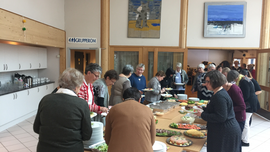 En stor takk til stor og flott dugnadsgjeng og ildsjeler i laga, som sørget for rigging av lokalet, smøring av rundstykker til frokost, fruktfat, serveringa av lunsj m.m.