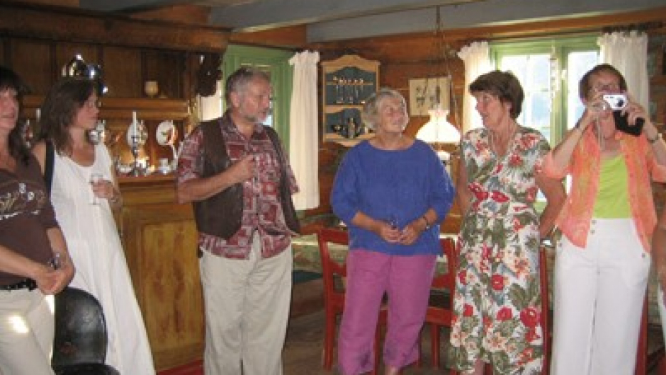 Etter velkomstdrink i vertskapets flotte gamle stue, koste vi oss med nydelig 3 retters middag, med lokale råvarer, i Salomos høysal. Stor stemning da vinnerne av kulturstien ble kåret og premiert med en flaske Champagne.